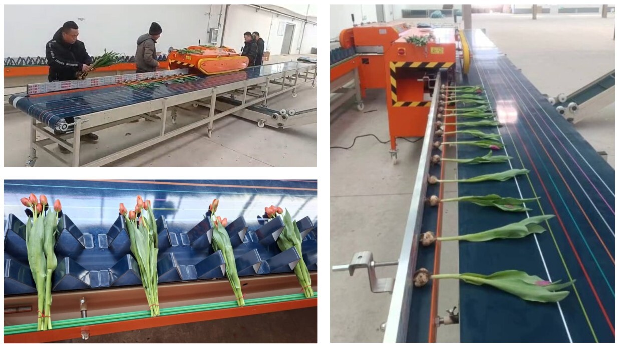 На фото выше - тестовые испытания линии на заводе в Китае. 15-20 декабря 2025 года. Специально привезли тюльпан по спецификации заказчика. Чтобы линия была уже готова к работе тогда, когда еще тюльпана не будет (январь 2026).
